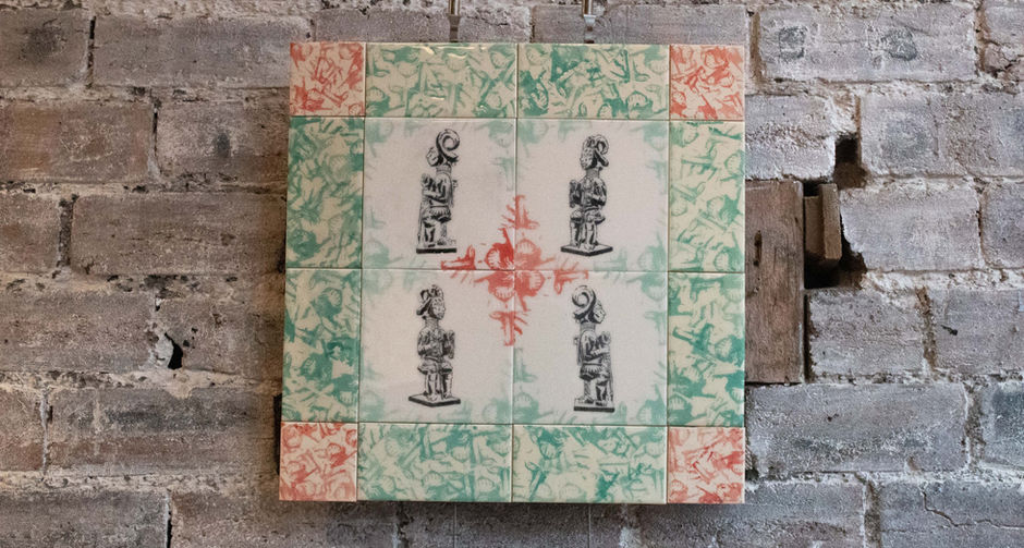 Informed by his research of National Museums Scotland's African collections, 'Okolo' by Scottish-Nigerian artist and printmaker
